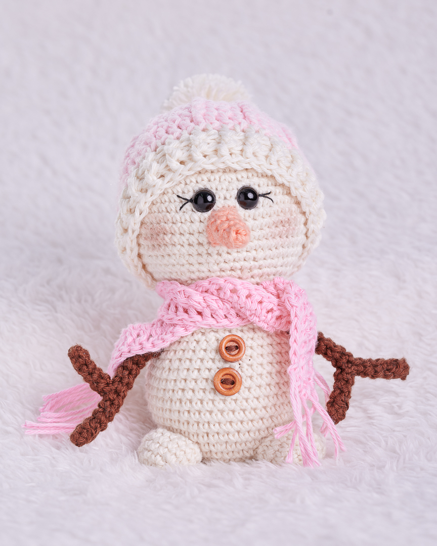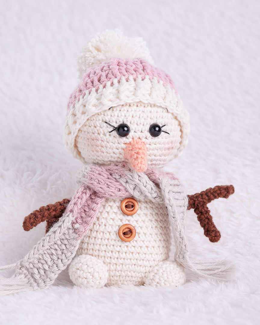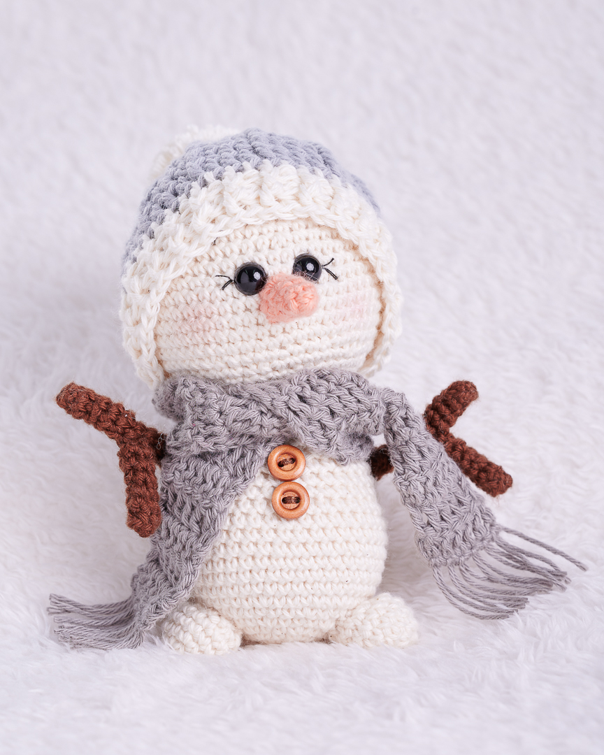 Muñeco de nieve tejido a mano punto por punto.
